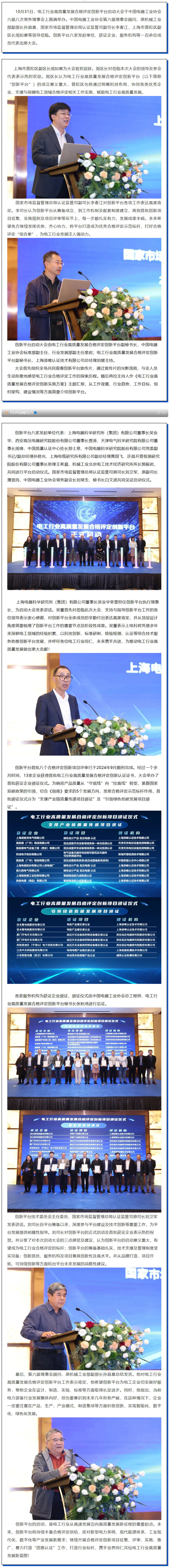 電工行業(yè)高質(zhì)量發(fā)展合格評(píng)定創(chuàng)新平臺(tái)啟動(dòng)大會(huì)于上海圓滿(mǎn)舉辦