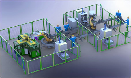 Eg2.落地項目自動生產(chǎn)線,由輸送、專機、信息管理網(wǎng)絡(luò)等組合構(gòu)成的有機整體。 |